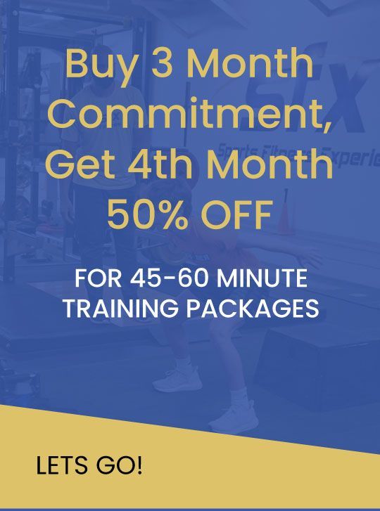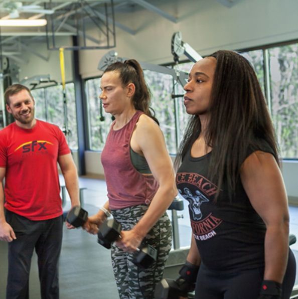 at SFX Fitness. Our one-on-one personal training classes implement a fitness workout regimen that’s customized to fit your needs, so you can get the most out of your time at the gym. We provide monthly-tier programs with 4, 8, or 12 monthly sessions in 30-minute or 1-hour increments.